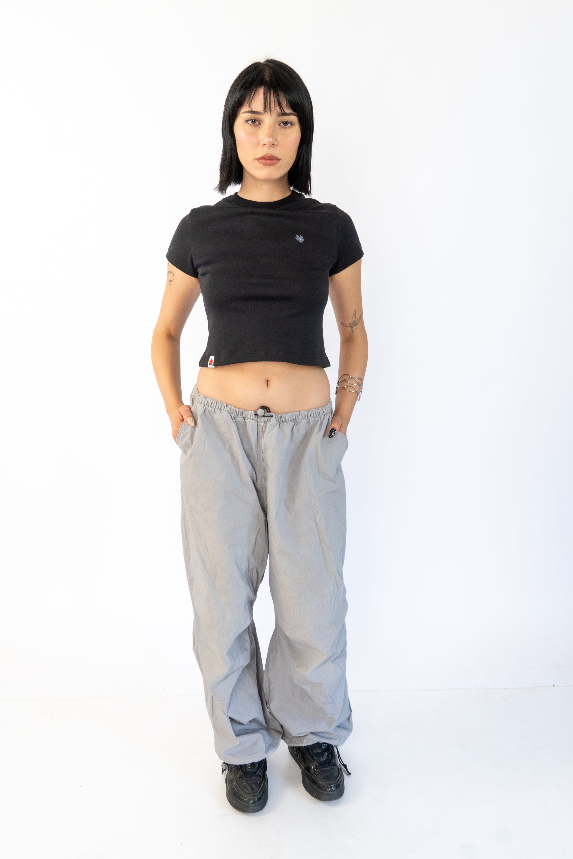 Diseñada para acompañarte en el día a día, esta baby tee combina un calce ajustado y cómodo con algodón suave al tacto, pensada para moverse contigo sin perder forma. El detalle floral bordado en el pecho funciona como un sello sutil: identidad WAV en su versión más pura.